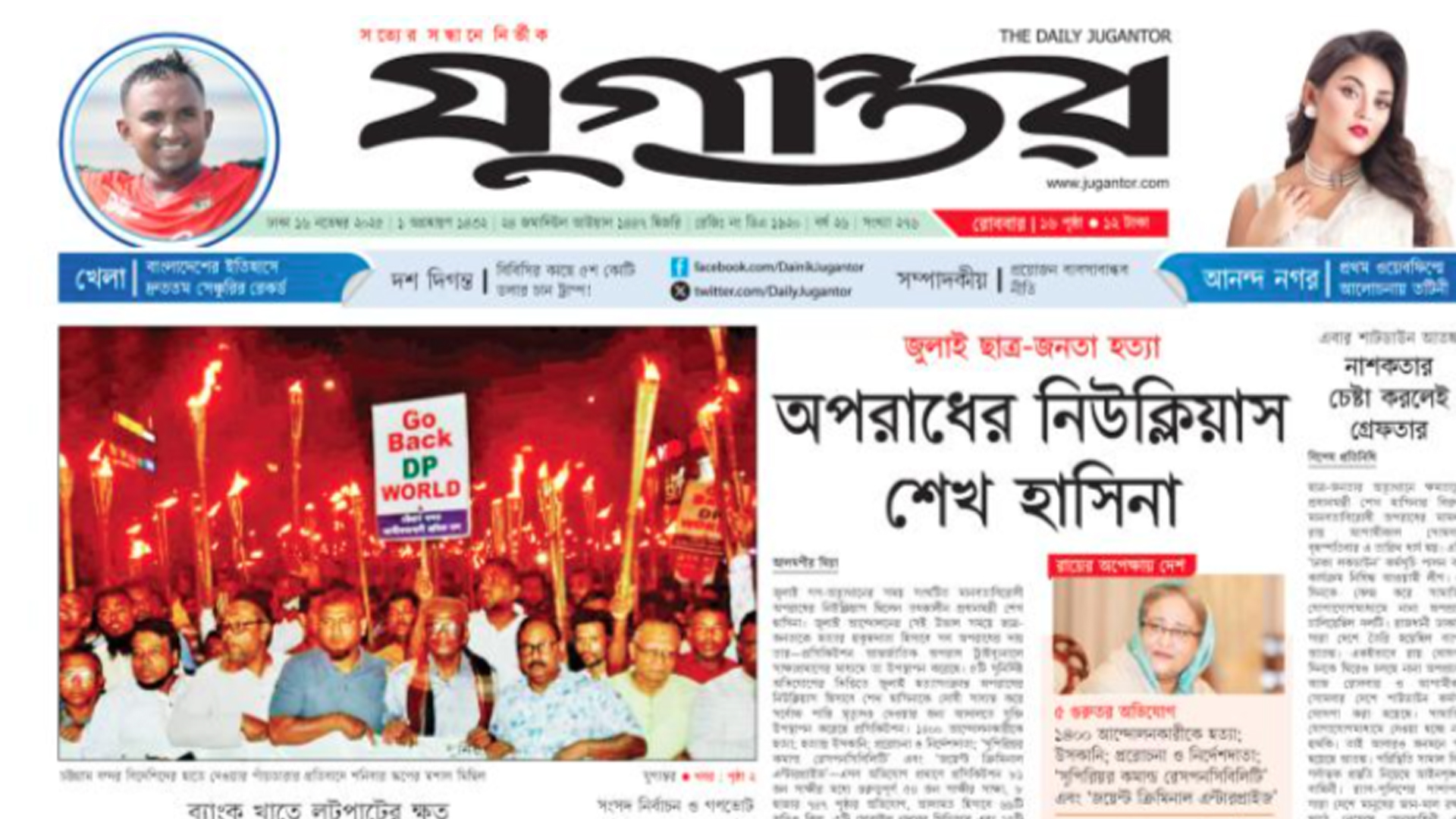অপরাধের নিউক্লিয়াস শেখ হাসিনা—যুগান্তরের প্রথম পাতার শিরোনাম এটা।