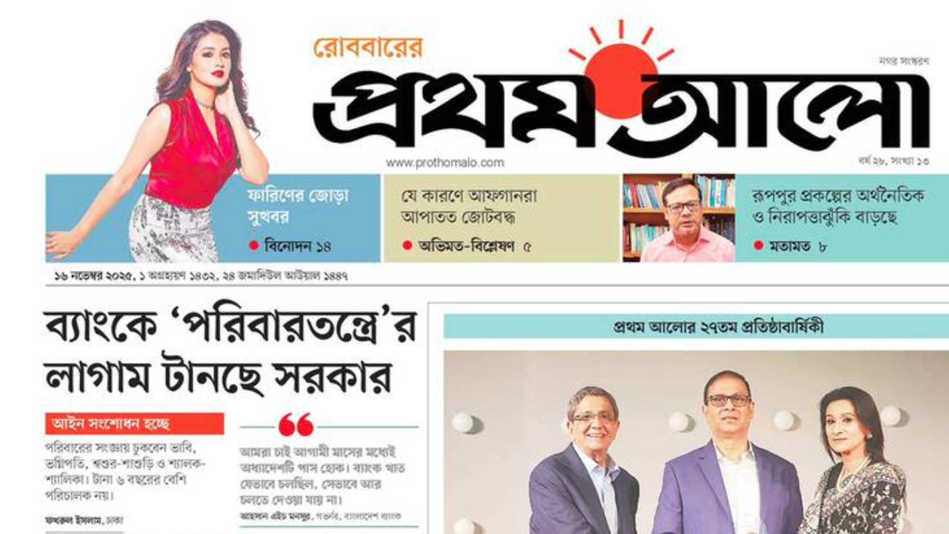 ব্যাংকে ‘পরিবারতন্ত্রে’র লাগাম টানছে সরকার—প্রথম আলোর প্রধান শিরোনাম এটি।