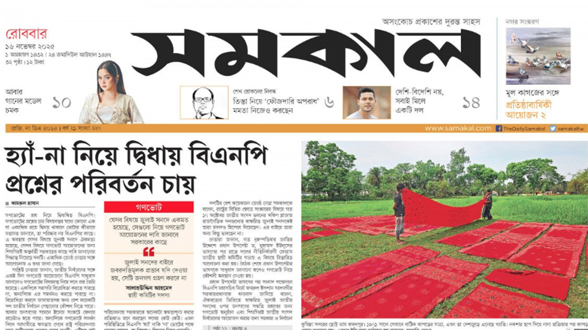 হ্যাঁ-না নিয়ে দ্বিধায় বিএনপি প্রশ্নের পরিবর্তন চায়—দৈনিক সমকালের প্রধান সংবাদ এটি।