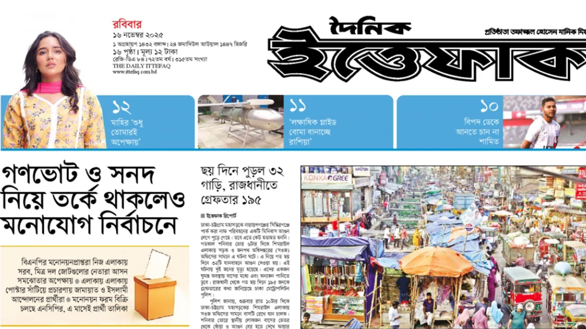 গণভোট ও সনদ নিয়ে তর্ক থাকলেও মনোযোগ নির্বাচনে—দৈনিক ইত্তেফাকের প্রধান প্রতিবেদন এটি।
