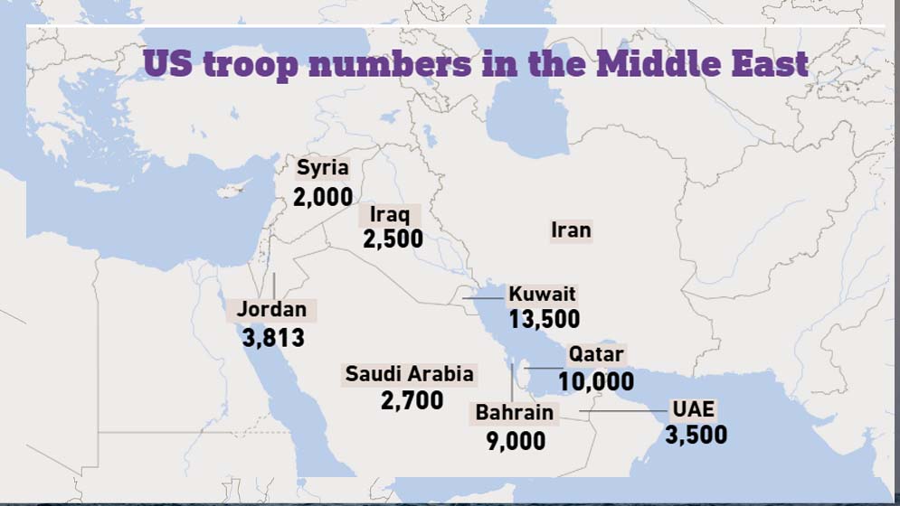মধ্যপ্রাচ্যে মার্কিন কোন ঘাঁটিতে কত সৈন্য আছে