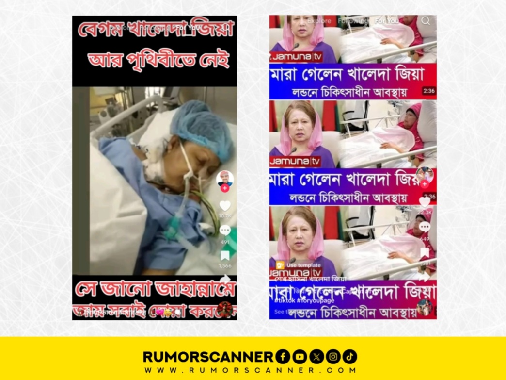 এদিকে সম্প্রতি ‘মারা গেলেন খালেদা জিয়া লন্ডনে চিকিৎসাধীন অবস্থায়’ ও ‘বেগম খালেদা জিয়া আর পৃথিবীতে নেই’ শীর্ষক দাবি ইন্টারনেটে প্রচার করা হয়েছে। তবে বিষয়টি সত্য নয়। আন্তর্জাতিক স্বীকৃত বাংলাদেশের ফ্যাক্ট চেকিং বা তথ্য যাচাইকারী প্রতিষ্ঠান রিউমর স্ক্যানার এ বিষয়ে শনিবার (১ মার্চ) একটি প্রতিবেদন প্রকাশ করেছে।