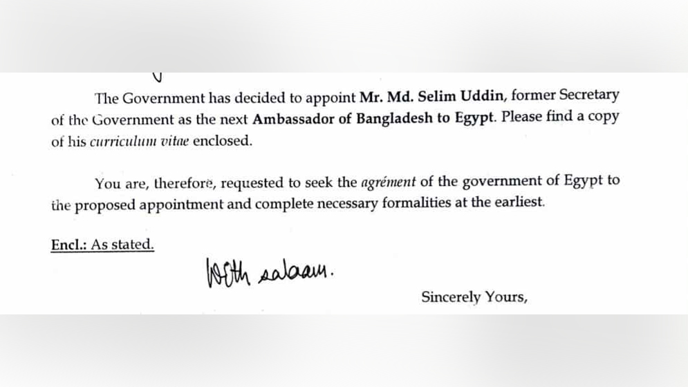 ক্ষমতাচ্যুত আওয়ামী লীগ সরকারের সর্বোচ্চ সুবিধাভোগী সাবেক সচিব সেলিম উদ্দিনকে মিসরের কায়রোতে বাংলাদেশের রাষ্ট্রদূত হিসেবে নিয়োগ দিতে যাচ্ছে অন্তবর্তী সরকার। পররাষ্ট্র ক্যাডারের ঊর্ধ্বতন কর্মকর্তাদের বদলে আওয়ামী আমলে সচিব হয়ে অবসরে যাওয়া এই বিতর্কিত কর্মকর্তাকে রাষ্ট্রদূত নিয়োগের দেওয়ার সব প্রক্রিয়া প্রায় চূড়ান্ত করেছে পররাষ্ট্র মন্ত্রণালয়। এতে নিজেদেরকে বঞ্চিত ও বৈষম্যের শিকার মনে করছেন বিসিএস পররাষ্ট্র ক্যাডারের ঊর্ধ্বতন কর্মকর্তারা।