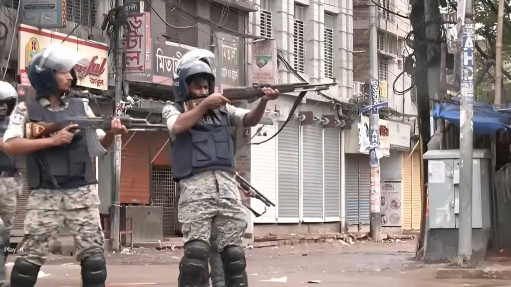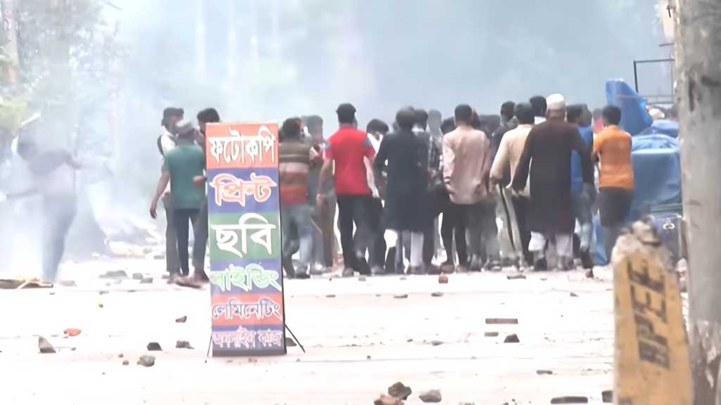ছাত্র-জনতার গণঅভ্যুত্থানে শেখ হাসিনার পতনের দিন, ২০২৪ সালের ৫ অগাস্ট চাঁনখারপুল এলাকায় আন্দোলনকারীদের ওপর গুলি চালায় পুলিশ।