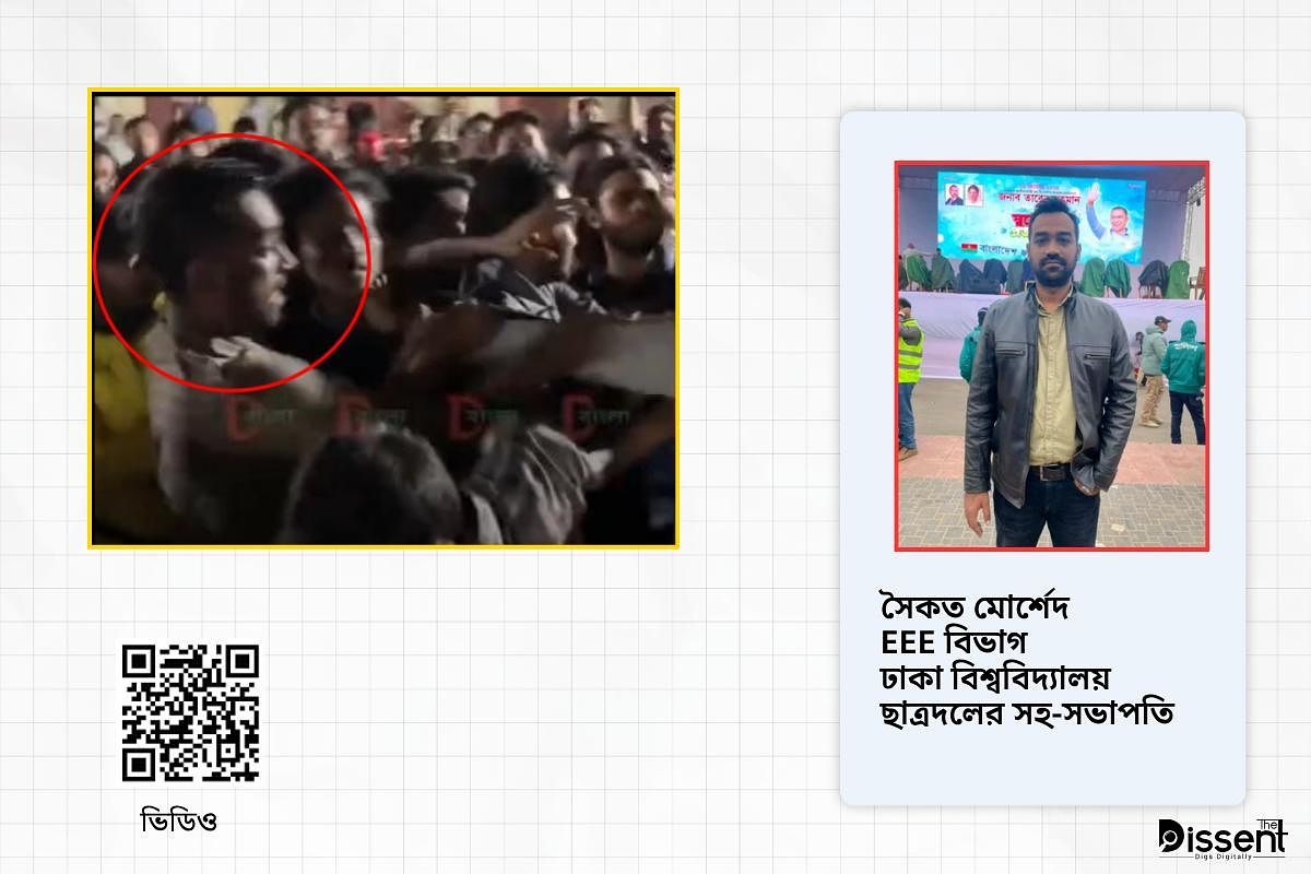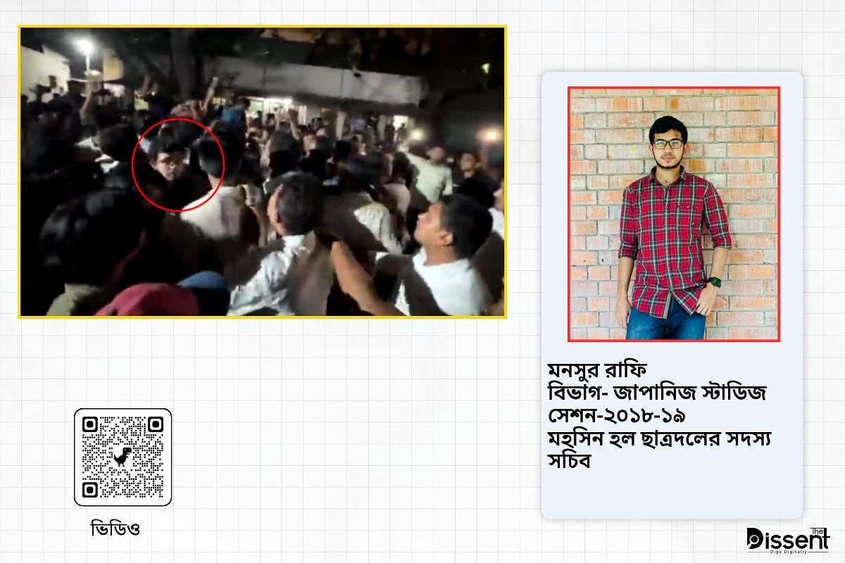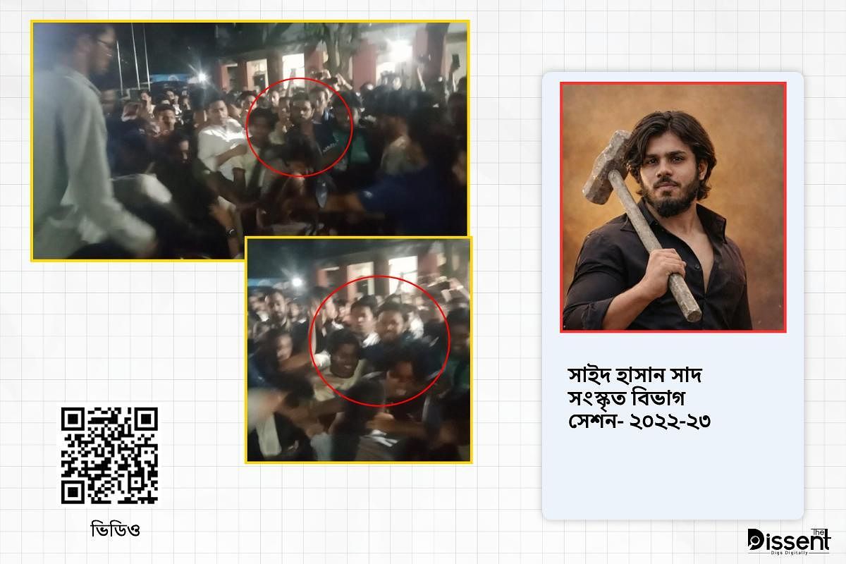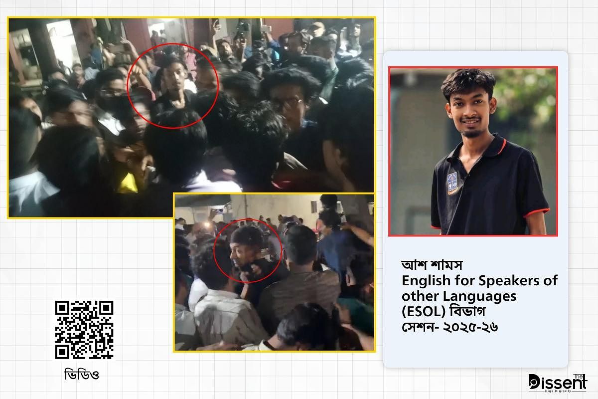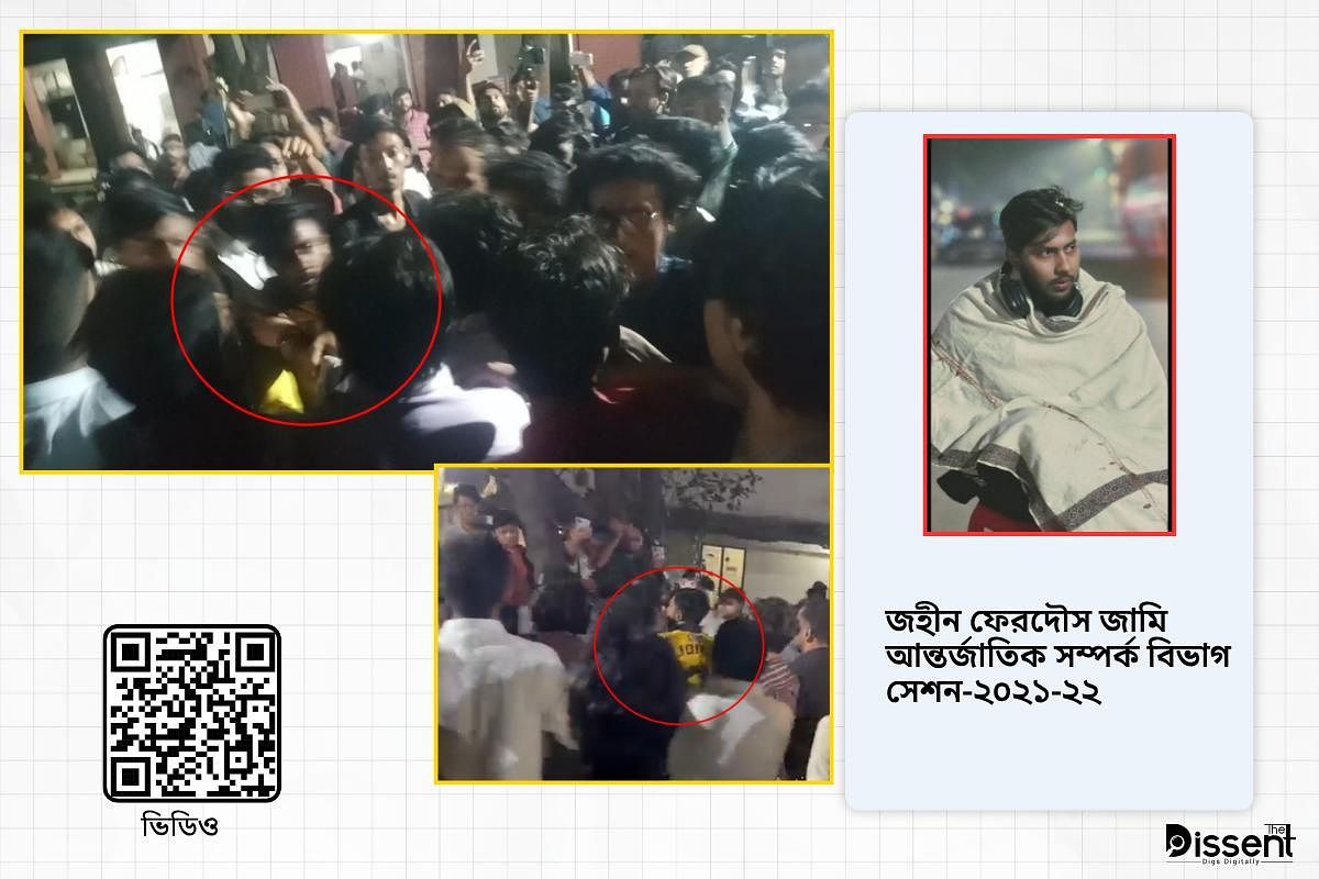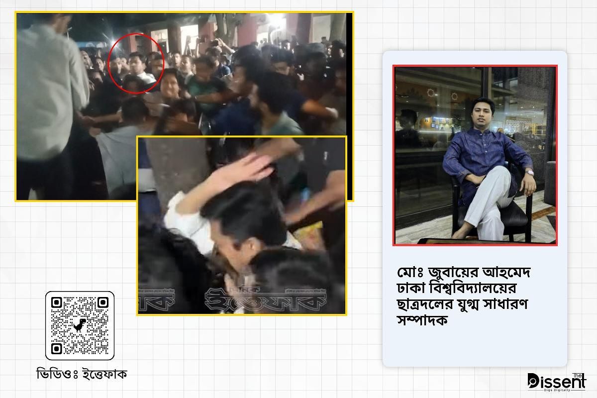সাংবাদিকদের ওপর হামলায় জড়িত ছাত্রদল নেতাকর্মীদের স্থায়ী বহিষ্কার ও সনদ বাতিলের দাবিতে শুক্রবার বিশ্ববিদ্যালয় প্রশাসন বরাবর স্মারকলিপি দিয়েছে ঢাকা বিশ্ববিদ্যালয় সাংবাদিক সমিতি (ডুজা)। সাংবাদিকদের ওপর হামলার ঘটনায় সংবাদমাধ্যম এবং সামাজিক যোগাযোগমাধ্যমে একাধিক ফুটেজ বিশ্লেষণ করে হামলাকারী কয়েকজনকে শনাক্ত করেছে দ্য ডিসেন্ট।