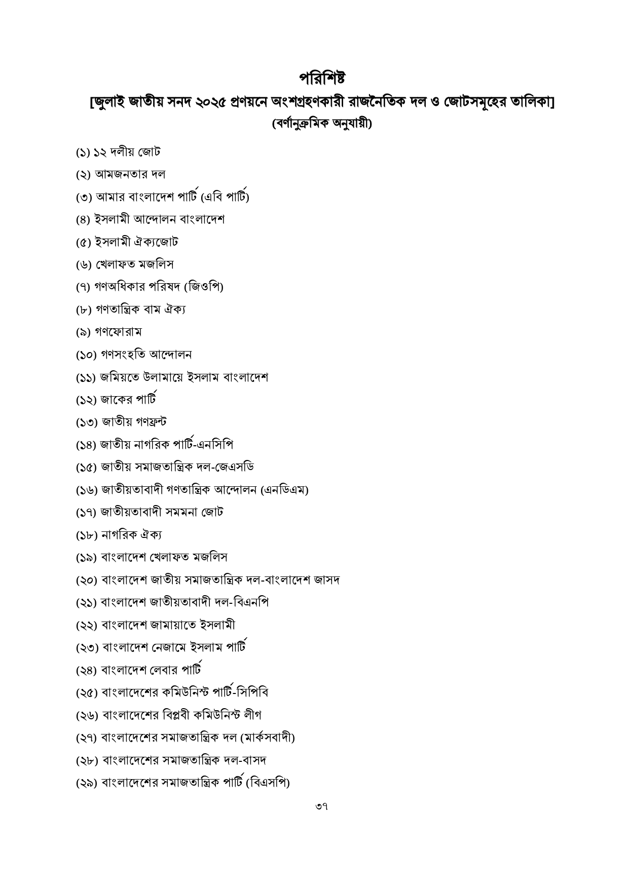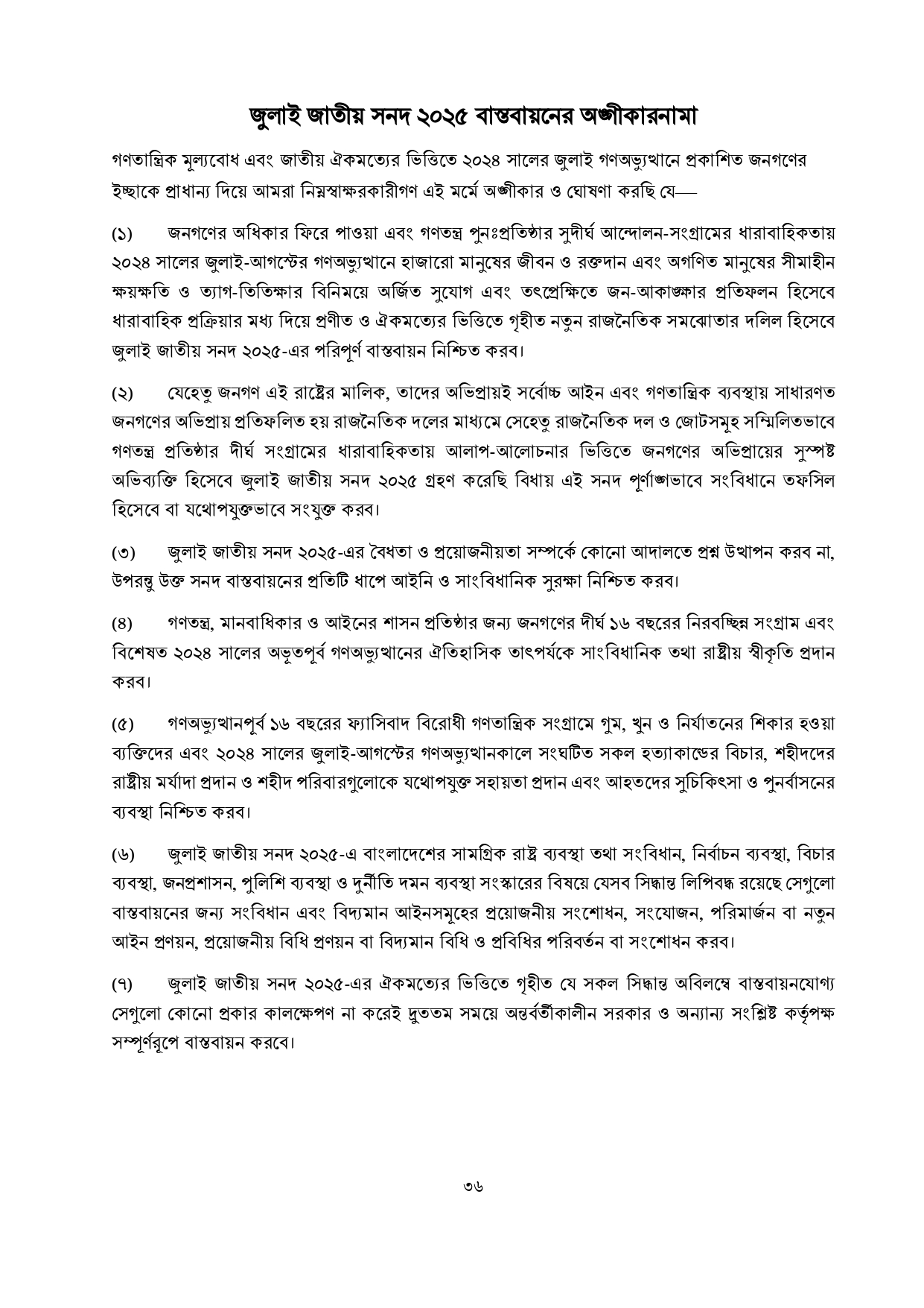 জুলাই জাতীয় সনদ ২০২৫ যা যা রয়েছে-