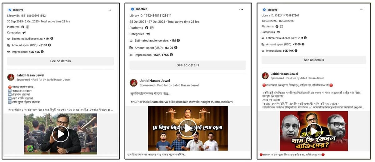 ইলিয়াস হোসাইনকে নিয়ে প্রচারিত কয়েকটি বিজ্ঞাপন | মেটা অ্যাড লাইব্রেরি