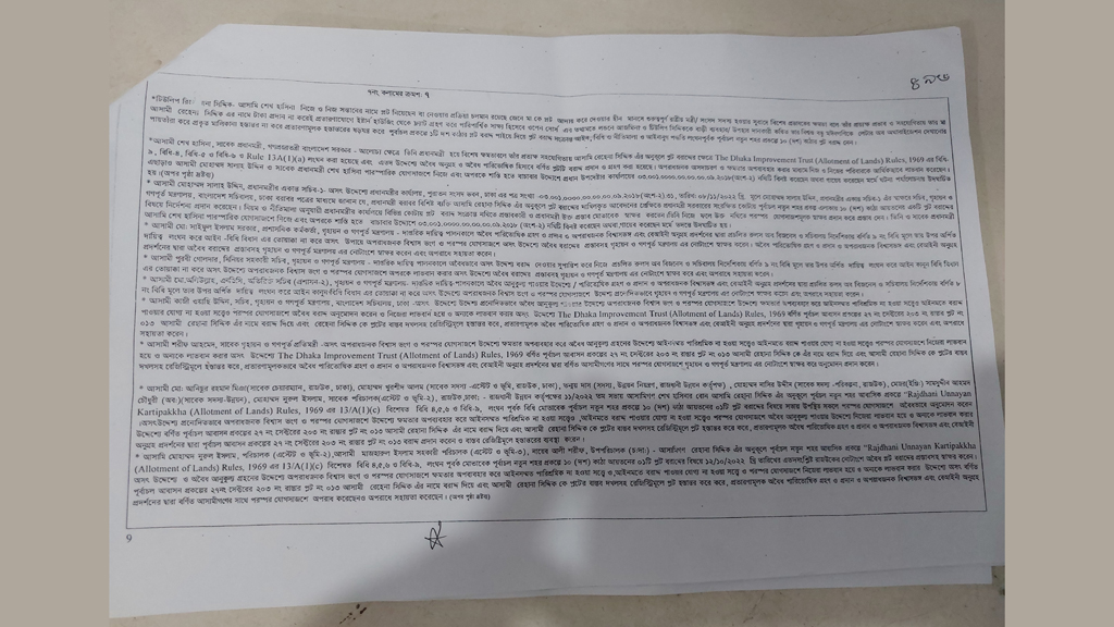 শেখ হাসিনা: ক্ষমতার অপব্যবহার করে বোনকে প্লট বরাদ্দে সহায়তা করেন। এর মাধ্যমে তিনি পরিবারকে আর্থিকভাবে লাভবান করেছেন। তিনি ও তার দপ্তরে একান্ত সচিব মোহাম্মদ সালাহ উদ্দিন যোগসাজশ করে নিজে ও অপরকে শাস্তি থেকে বাঁচানোর উদ্দেশ্যে সরকারপ্রধানের দপ্তরের একটি নথি বিনষ্ট করেছেন অথবা গায়েব করেছেন।