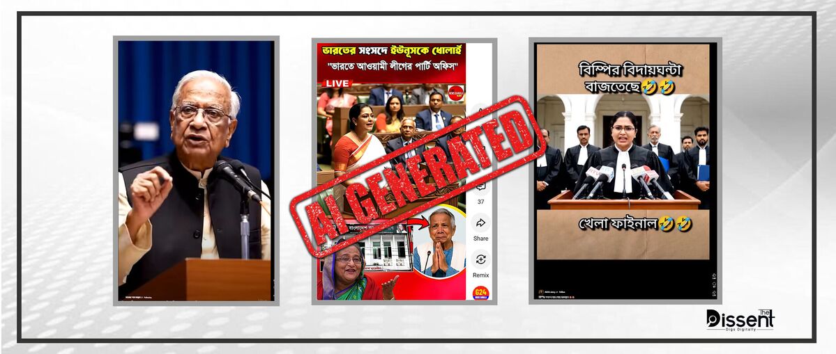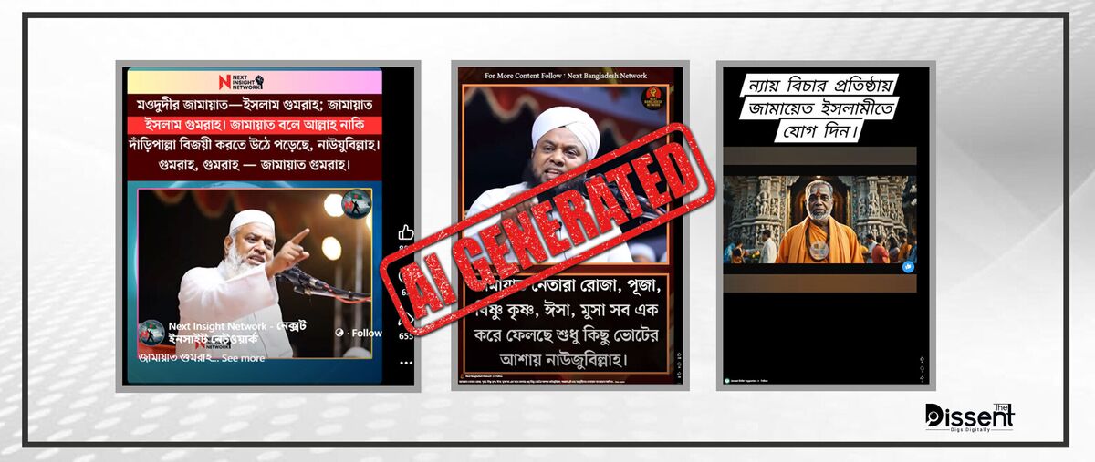 এছাড়াও মগবাজার, Politics Paheli, Romana Rahman, Voice of Ekattor এসব পেইজ থেকে বিভিন্ন রাজনৈতিক নেতাদের ছবি ব্য়বহার করে ভুয়া বক্তব্য সংবলিত এআই ভিডিও তৈরি করতে দেখা গেছে।