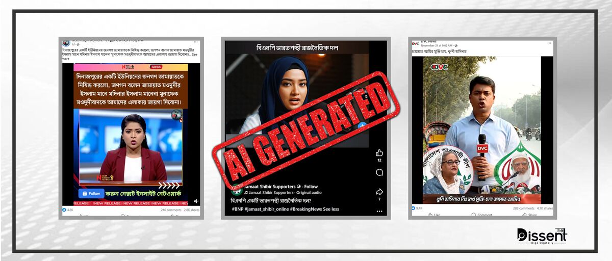 রাজনৈতিক প্রতিপক্ষকে নিয়ে ভুয়া বা অযাইকৃত তথ্যকে খবরের আকারে উপস্থাপন করার জন্য সাংবাদিক ও সংবাদ উপস্থাপকের এআই চরিত্র ব্যবহার করা হচ্ছে কিছু পেইজে।