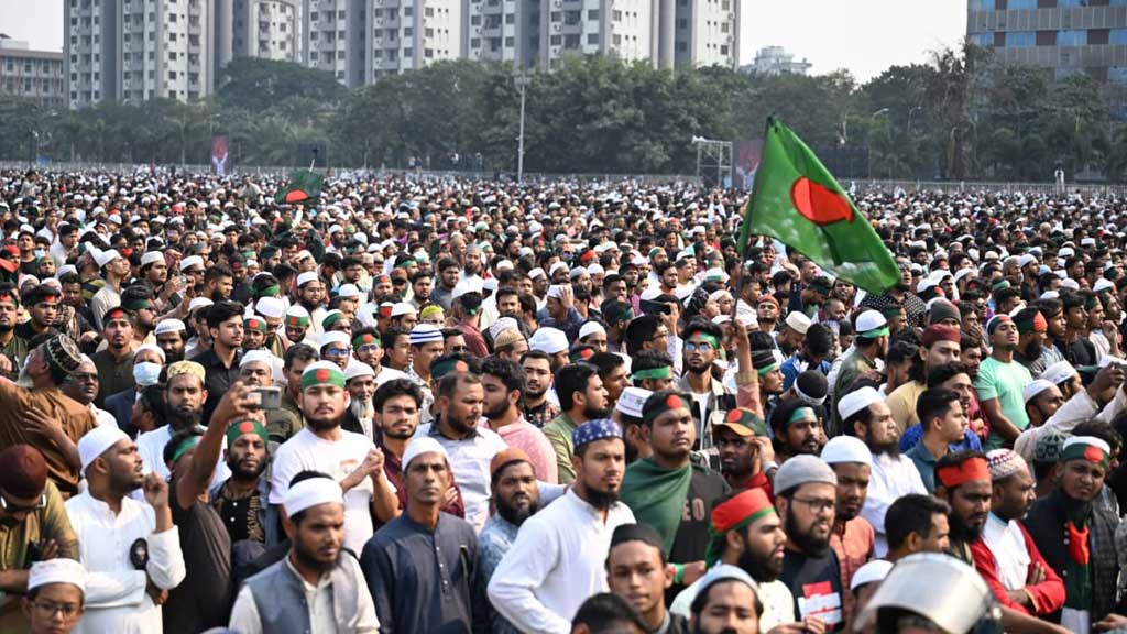 শনিবার দুপুরে জাতীয় সংসদ ভবনের দক্ষিণ প্লাজায় হাদির জানাজা পূর্ব বক্তব্যে তিনি বলেন, “আমরা এখানে কি কান্নার জন্য এসেছি? আমরা এখানে কিসের জন্য এসেছি?