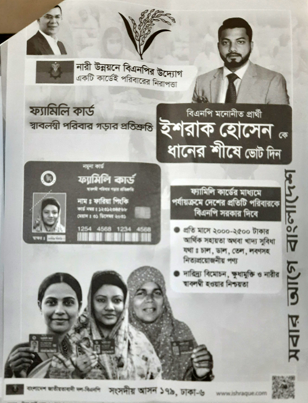 নির্বাচন উপলক্ষে বসানো অস্থায়ী ক্যাম্প অফিসগুলোতে বিএনপির বিভিন্ন সময়ে দেওয়া প্রতিশ্রুতি, ৩১ দফার কথা ও প্রতি মাসে ২০০০ থেকে ২৫০০ টাকার আর্থিক সুবিধা দেওয়ার ফ্যামিলি কার্ড নিয়ে লিফলেট বিতরণ করা হচ্ছে।