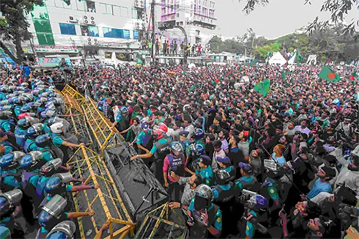 হাসিনার কাছে যুক্তি তৈরি ছিল। তিনি বলেন, ক্ষুব্ধ ছাত্রদের সঙ্গে এই আন্দোলনের সম্পর্ক নেই। এটা রাজনৈতিক আন্দোলন এবং বাইরের শক্তি একে ইন্ধন দিচ্ছে ও নিয়ন্ত্রণ করছে। ছাত্র আন্দোলন গতি পাওয়ার পর থেকে তিনি এই একই কথা বলে আসছিলেন। তবে পুলিশ কমিশনার বলেন, তার বাহিনী শৃঙ্খলাব্ধ এবং তাদেরকে যে নির্দেশ দেয়া হবে তা তারা পালন করবে।