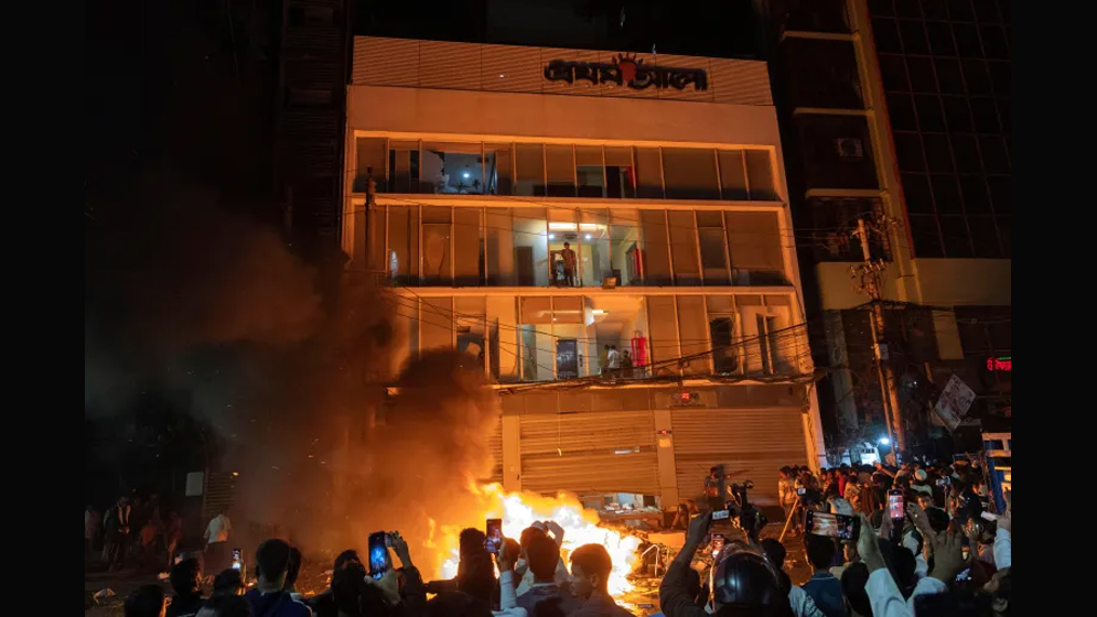কিছু দূরে আরেকদল বিক্ষোভকারী দ্য ডেইলি স্টার ভবনে ঢুকে আগুন ধরিয়ে দেয়। পত্রিকাটি জানায়, সেখানে ২৮ জন সাংবাদিক ও কর্মী প্রায় চার ঘণ্টা আটকে ছিলেন।