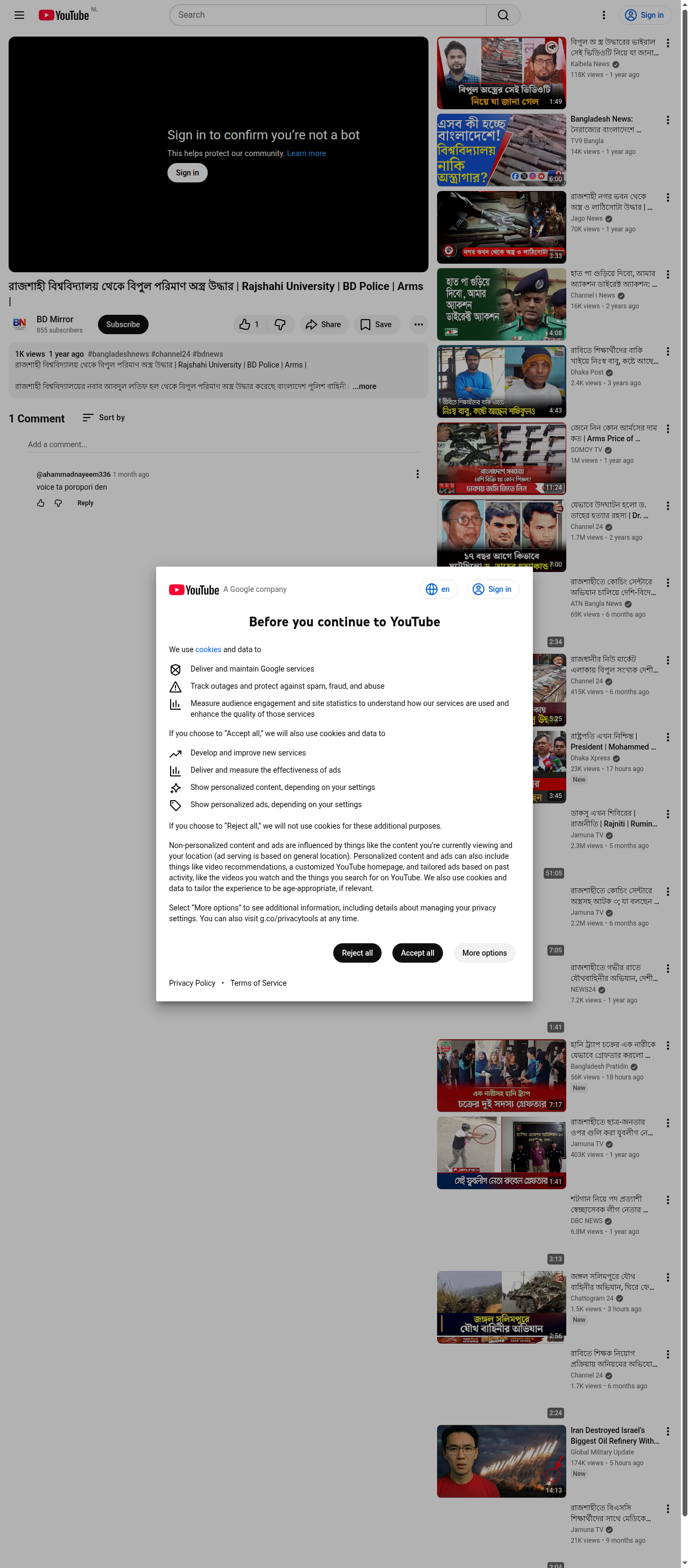অর্থাৎ, “রাজশাহী বিশ্ববিদ্যালয় শিবির এবং ছাত্রদল সভাপতির রুম থেকে পুলিশের লুট হওয়া অ:/স্ত্র উদ্ধার দাবিতে প্রচারিত ভিডিওটি মিথ্যা। মুন্সিগঞ্জের টঙ্গীবাড়ী উপজেলার অস্ত্র উদ্ধারের ভিডিওটি শিবির ও ছাত্রদলের নামে প্রচার করা হচ্ছে।